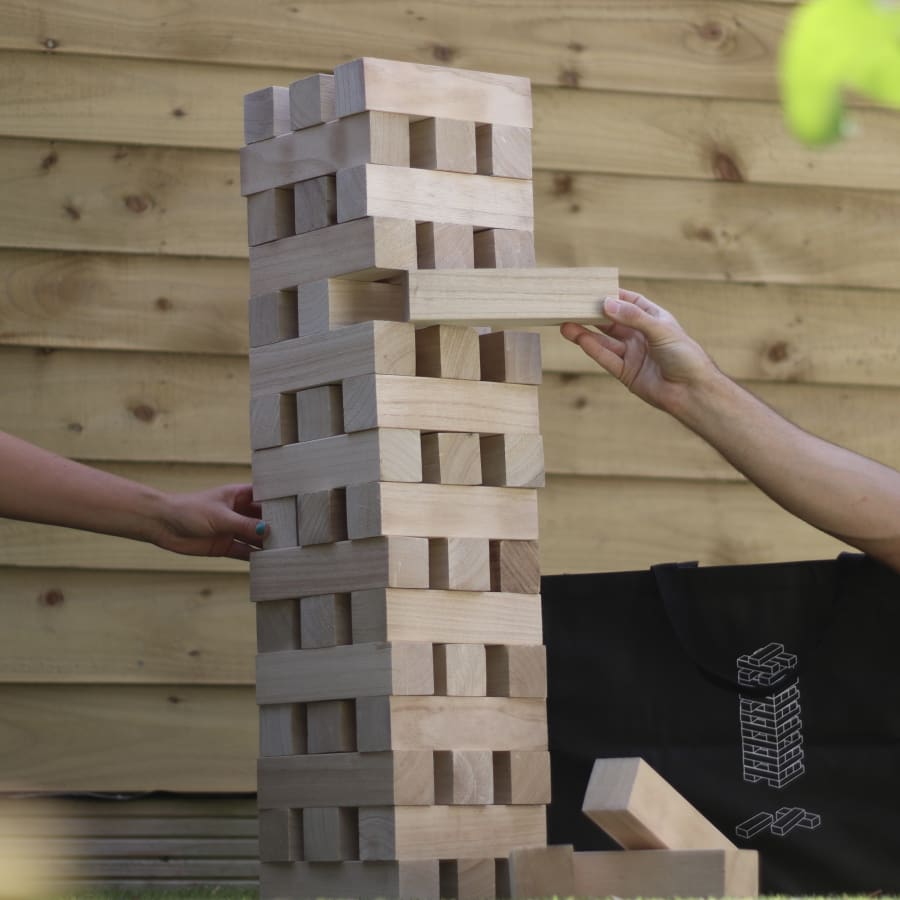 A great way to kick start your garden party and provide interactive entertainment for everyone to get involved in. Giant Jenga improves physical development as well as hand-eye coordination. The game builds to over 4ft high, and consists of 51 light and durable Paulowina wood wooden pieces, with each piece measures 20cm long. Suitable for both outdoors and indoors use.